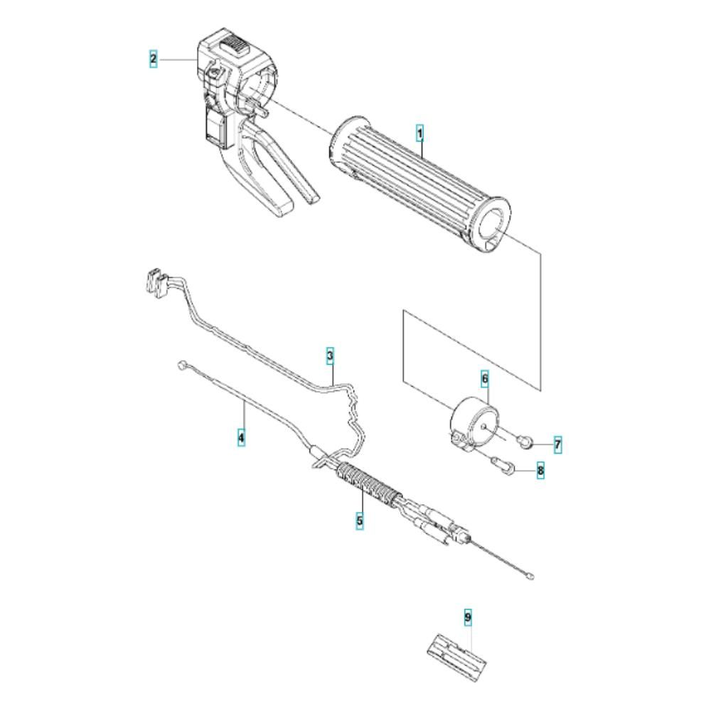 The Throttle Assembly for the Husqvarna 541RB Brushcutter is designed to ensure precise control and efficient operation. This assembly includes components such as cables, levers, and springs, which are essential for maintaining the brushcutter's performance. Regular maintenance of these parts helps in achieving optimal functionality and prolongs the lifespan of the equipment.