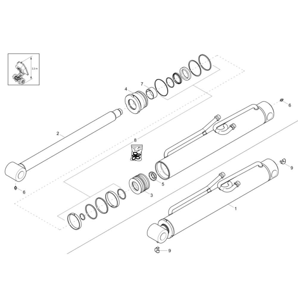 The Tilt Ram Assembly for the Wacker DW20 Dumper is designed to ensure efficient operation and longevity of the machine. This assembly plays a crucial role in the tilting mechanism, providing the necessary force and stability. It includes components such as hydraulic cylinders, seals, and mounting brackets, all essential for maintaining optimal performance and safety during operation.