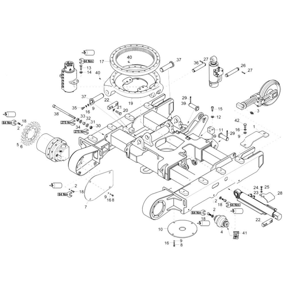 The Track Laying Gear Assembly for the Wacker ET18 Mini Excavator is essential for maintaining optimal performance and reliability. This assembly includes components such as rollers, tracks, and tensioners, which ensure smooth operation and stability on various terrains. Designed for durability, these genuine Wacker Neuson parts help extend the lifespan of your mini excavator.