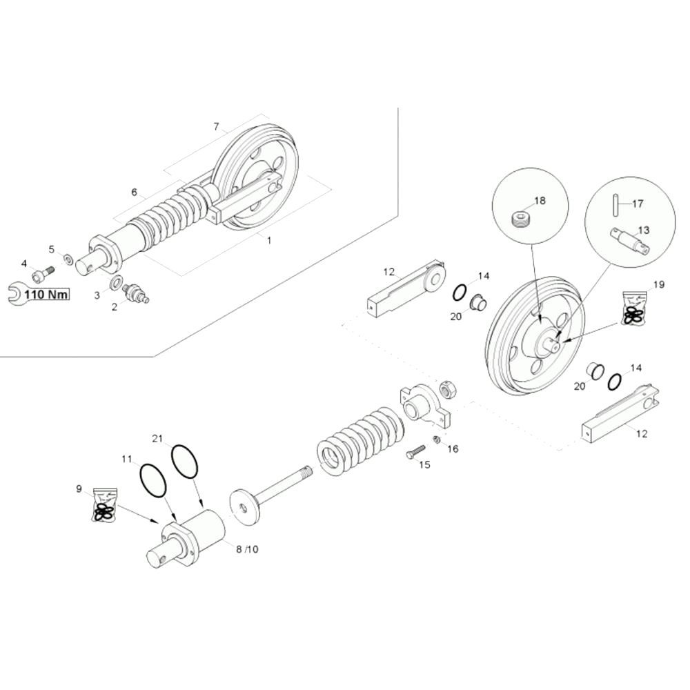 The Track Tensioner Assembly for the Neuson 75Z3 Mini Excavator is essential for maintaining optimal track tension and performance. This assembly includes components designed to ensure smooth operation and longevity of the excavator's tracks. Genuine Wacker Neuson parts ensure compatibility and reliability, helping to prevent track slippage and wear.