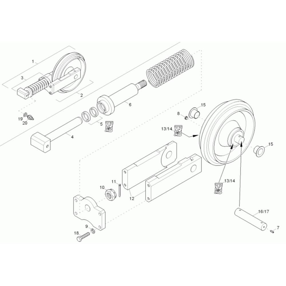 The Track Tensioner Assembly for the Neuson 38Z3 Mini Excavator is essential for maintaining optimal track tension and performance. This assembly includes key components such as springs, adjusters, and seals, ensuring smooth operation and reducing wear on the tracks. Genuine Wacker Neuson parts guarantee compatibility and reliability for your excavator.