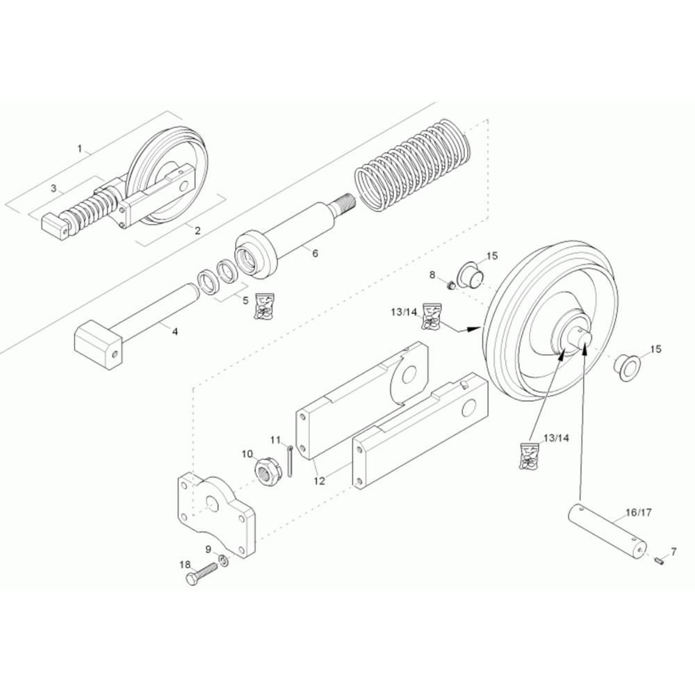 The Track Tensioner Assembly for the Wacker 28Z3 Mini Excavator is essential for maintaining optimal track tension and ensuring smooth operation. This assembly includes key components such as springs, adjusters, and seals, which work together to provide stability and reduce wear on the tracks. Genuine Wacker Neuson parts ensure compatibility and reliability for your excavator.