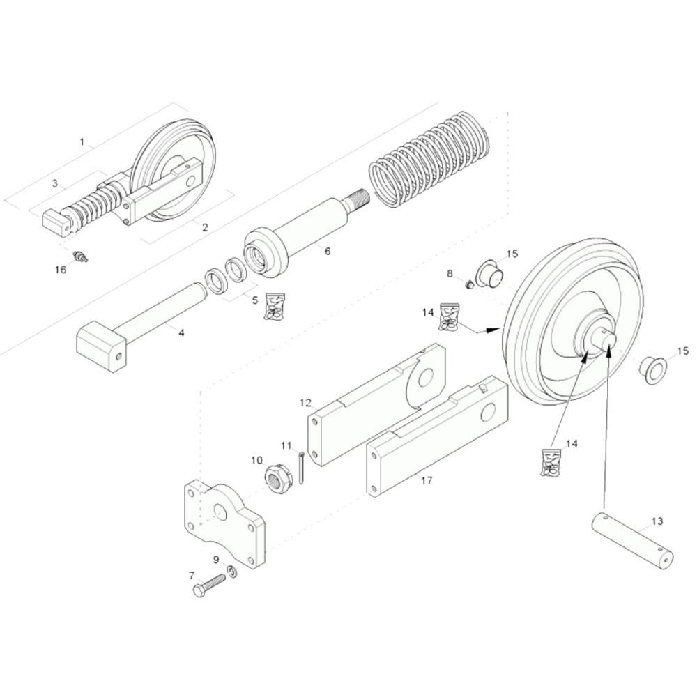 The Track Tensioner Assembly for the Wacker ET24 Mini Excavator is designed to maintain optimal track tension, ensuring smooth operation and reducing wear. This assembly includes components such as springs, adjusters, and seals, which work together to provide reliable performance. Essential for routine maintenance, it helps extend the life of your excavator's tracks.