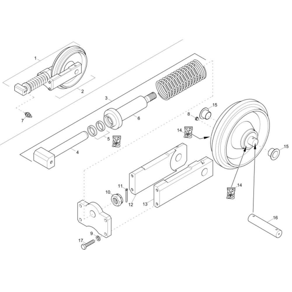 The Track Tensioner Assembly for the Wacker EZ36 Mini Excavator is essential for maintaining optimal track tension and performance. This assembly includes components such as springs, adjusters, and seals, ensuring smooth operation and reducing wear. Designed for the Wacker Neuson model, it helps extend the life of your excavator by preventing track slippage and ensuring efficient movement.