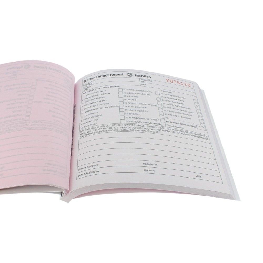 Trailer check book, vehicle defect log (trailer), daily walkaround inspection book, DVSA trailer defect pad, trailer inspection log, driver defect report pad, trailer safety checklist book, roadworthiness defect report book.