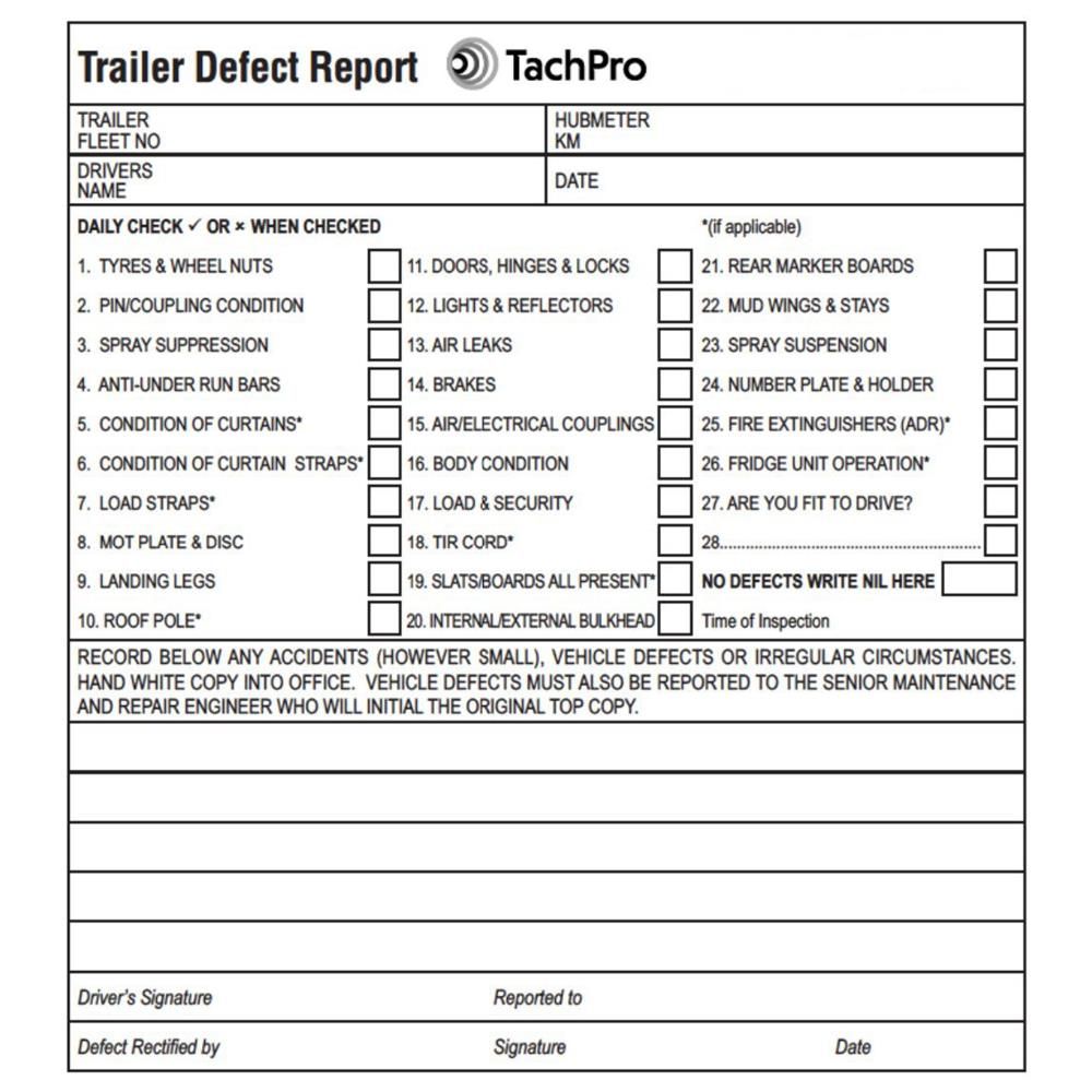 - Structured fields to capture trailer identification, date, location, defect description, action taken and signatures