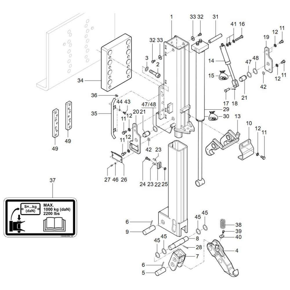 The Trailer Hitch Assembly for the Wacker TH730 (415-34) Telehandler is designed to facilitate secure towing and transport tasks. This assembly ensures compatibility and reliability, featuring components such as hitch pins, brackets, and mounting hardware. Essential for maintaining operational efficiency, it supports the telehandler's versatility in various applications.