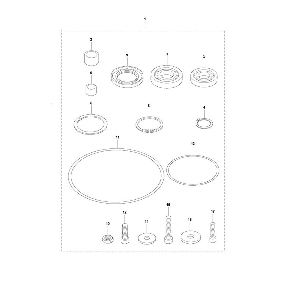 The Transmission Repair Kit for the Husqvarna LT6005 Trench Rammer includes essential components to ensure optimal performance and longevity. Designed for maintaining and repairing the transmission system, this kit helps in reducing wear and tear, ensuring smooth operation. Genuine Husqvarna parts are included to guarantee compatibility and reliability.