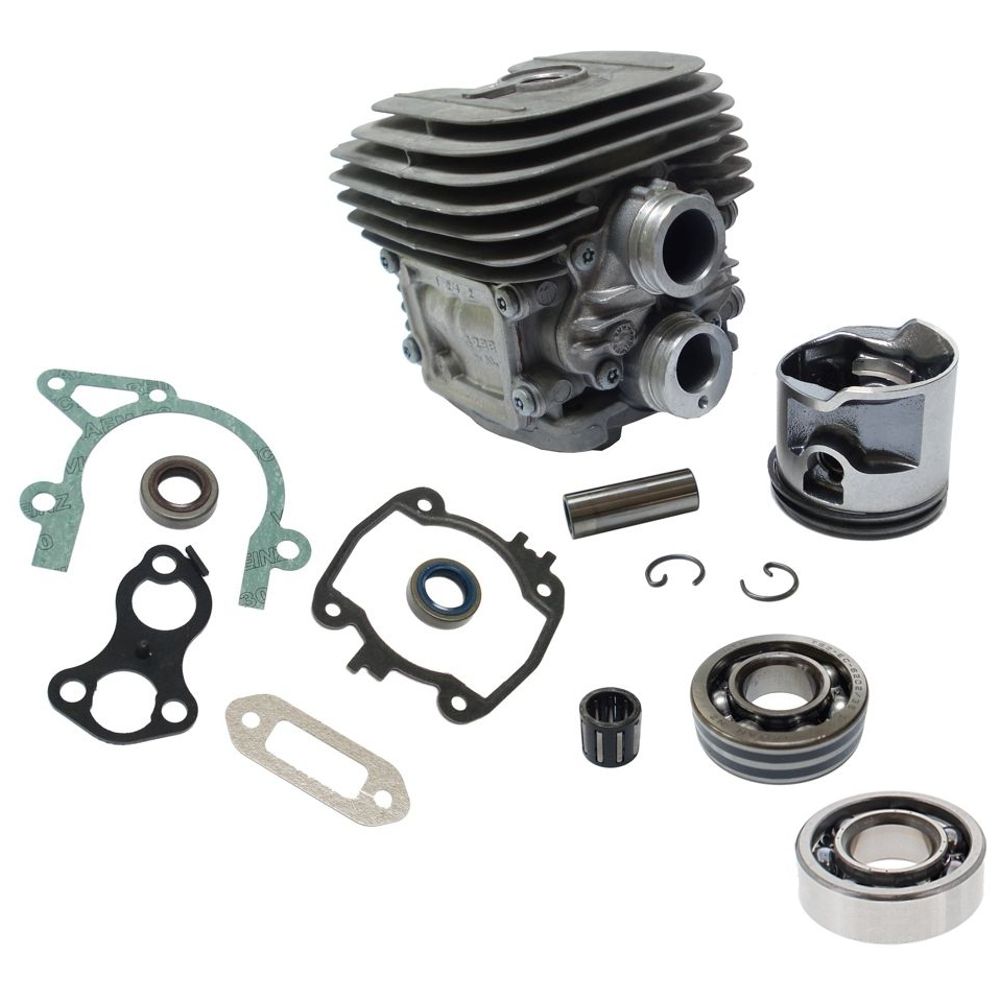 Top-end kit, piston and cylinder kit, engine overhaul kit, rebuild set, main crank bearing set, small-end needle bearing kit, piston and gasket set, rotor saw cylinder kit, concrete saw engine repair kit, cut-off saw top-end rebuild kit.