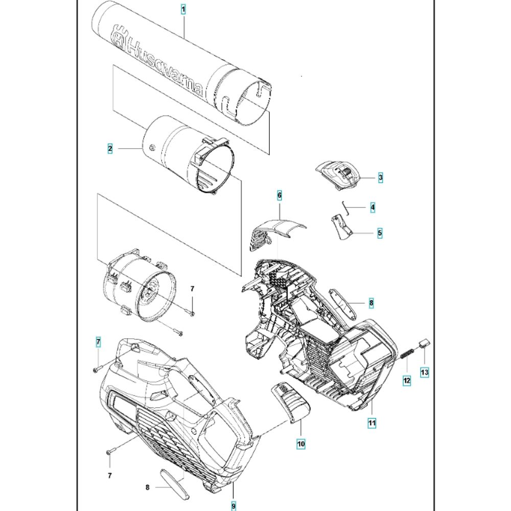 The Tube Assembly for the Husqvarna 320iB US Battery Blower is designed to ensure optimal airflow and performance. This genuine Husqvarna part is essential for maintaining the efficiency of your battery blower. The assembly includes components that help direct air effectively, supporting the blower's functionality and longevity.