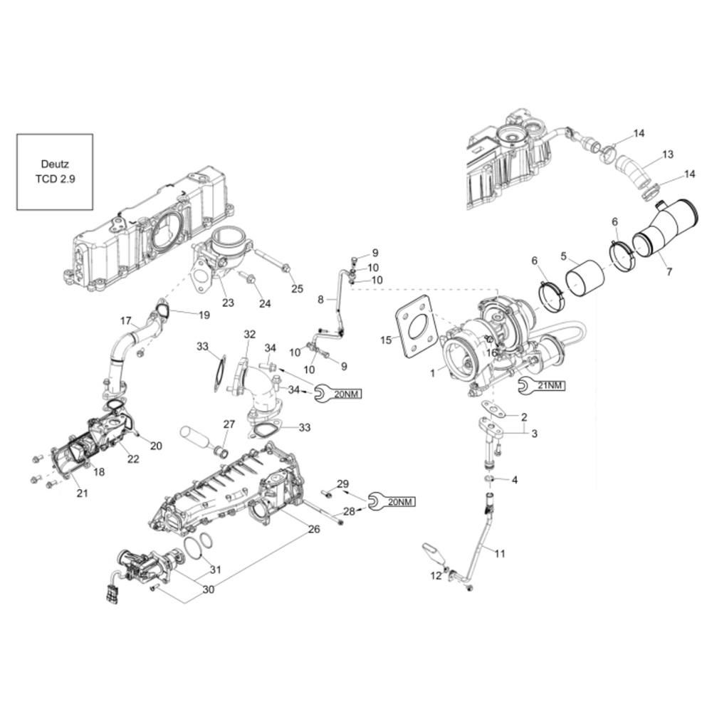 The Turbo Supercharger Assembly for the Wacker DW50 Dumper is designed to enhance engine performance and efficiency. This assembly includes vital components such as turbines, compressors, and housings, ensuring optimal power output and reduced emissions. Genuine Wacker Neuson parts guarantee compatibility and reliability for your dumper.