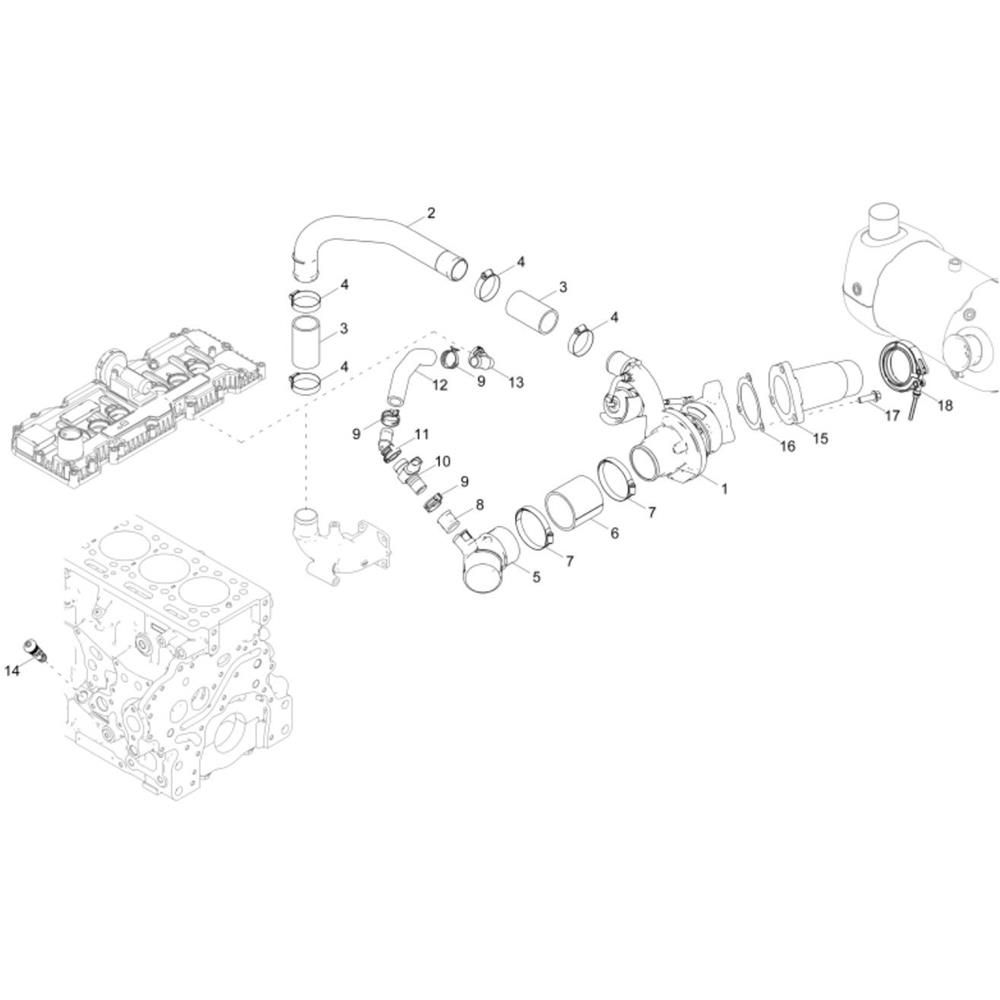 The Turbosupercharger (904J-E28T) Assembly is designed for the Wacker ET90 Mini Excavator, enhancing engine performance by increasing air intake efficiency. This assembly includes components such as turbines, compressors, and housings, ensuring optimal operation and longevity. Genuine Wacker Neuson parts guarantee compatibility and reliability for your excavator.