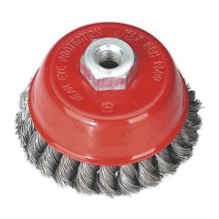 The Twisted Wire Cup Brush - 895 379 is a robust cleaning tool designed for heavy-duty applications. Made from hardened steel wire, this brush features a 70mm diameter and a 2mm pitch, ideal for removing rust, paint, and corrosion from metal surfaces. The M14 hole size makes it compatible with a variety of angle grinders and power tools, offering versatility for both professional tradespeople and DIY enthusiasts. Its durable construction ensures long-lasting performance, making it a reliable choice for maintaining equipment and surfaces.