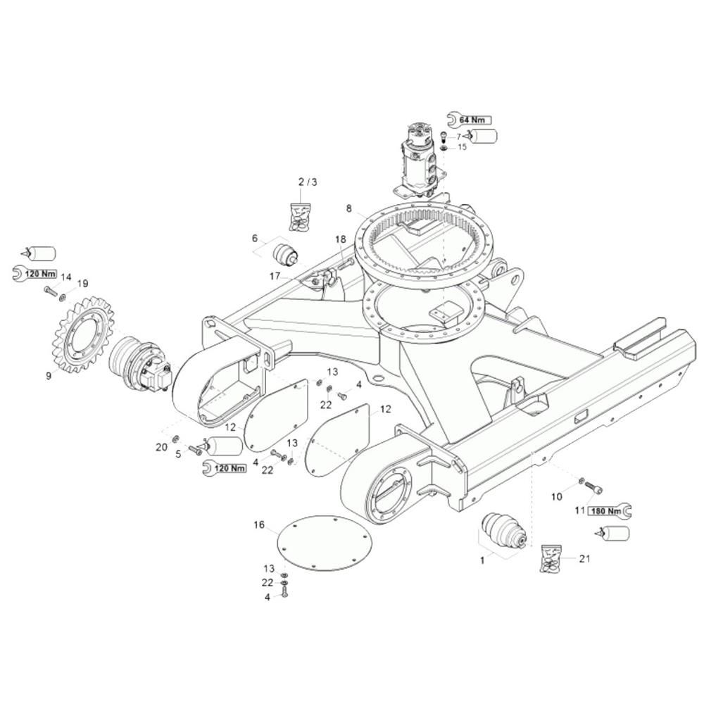 The Undercarriage Assembly for the Wacker ET24 Mini Excavator includes key components essential for maintaining stability and mobility. This assembly ensures optimal performance and longevity of the excavator, featuring parts such as tracks, rollers, and idlers. Designed for durability, it supports efficient operation in various construction environments.