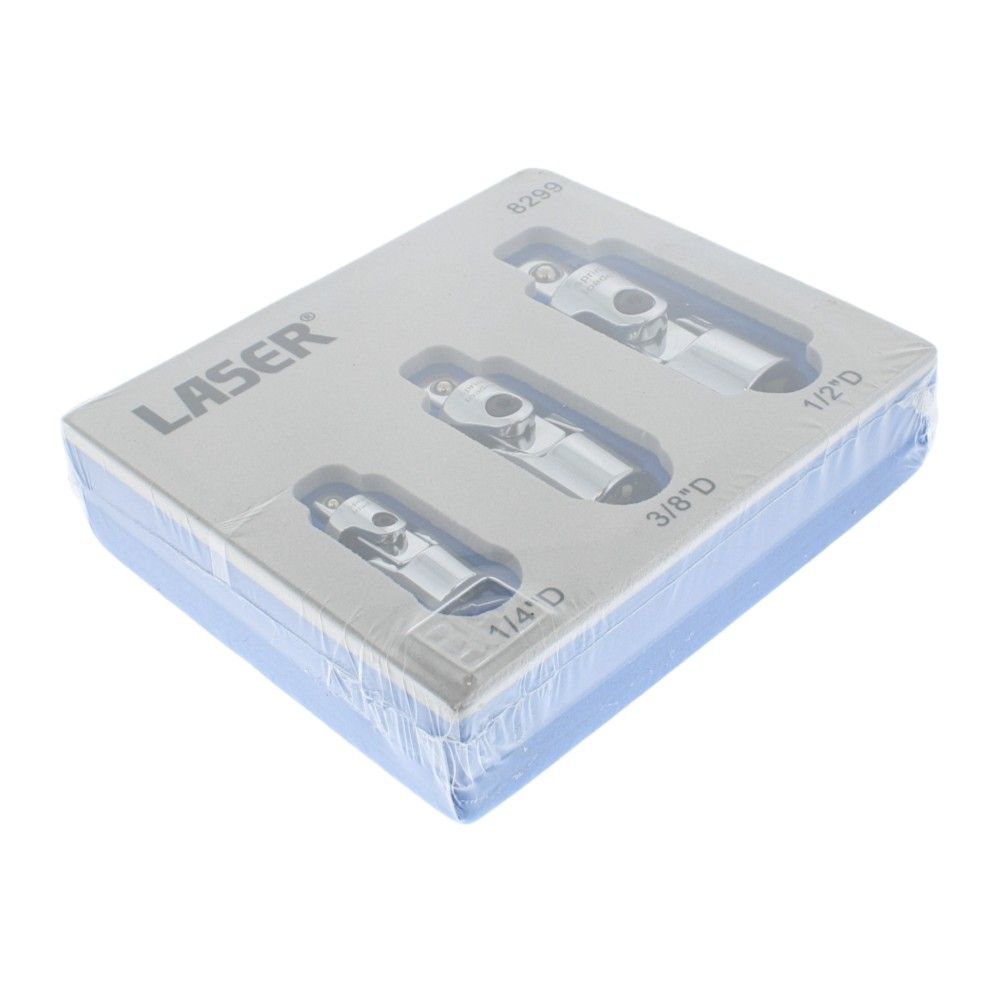 This 3 piece spring loaded universal joint set, comprising of 1/4", 3/8" & 1/2" drive joints, has been designed to make them easier to fit on to sockets and offer up to fasteners. Their low profile design allows them to be used in confined spaces, making them ideal for use in engine bays and under dashboards, and the springs also help to prevent the joint becoming loose with age and wear, meaning that they will continue to be easy to handle.