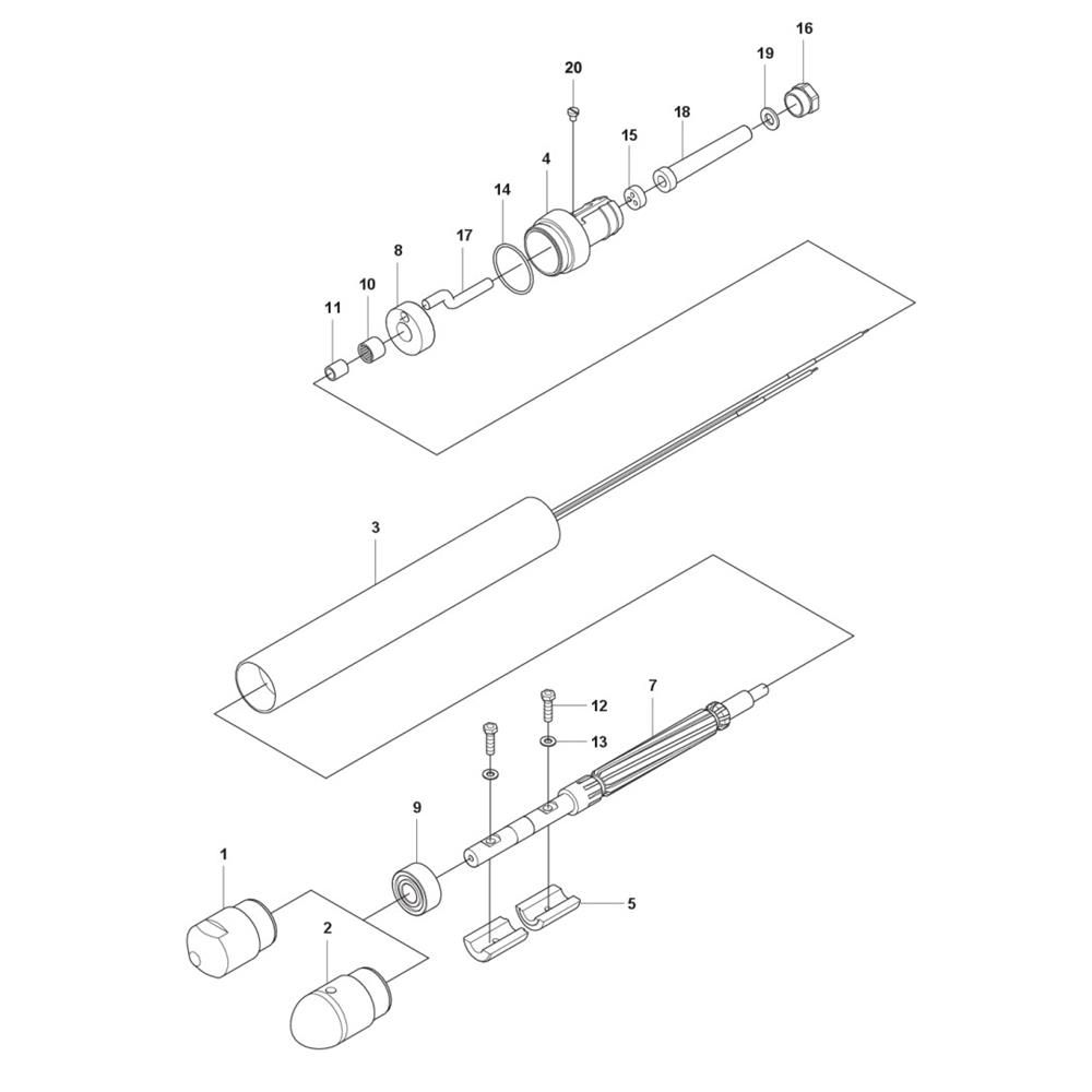 The Vibrator Assembly for the Husqvarna AX 40 Poker is designed to ensure optimal performance and longevity. This assembly includes essential components such as shafts, bearings, and seals, which work together to deliver efficient vibration for concrete consolidation. Genuine Husqvarna parts ensure compatibility and reliability, making them ideal for construction and repair tasks.