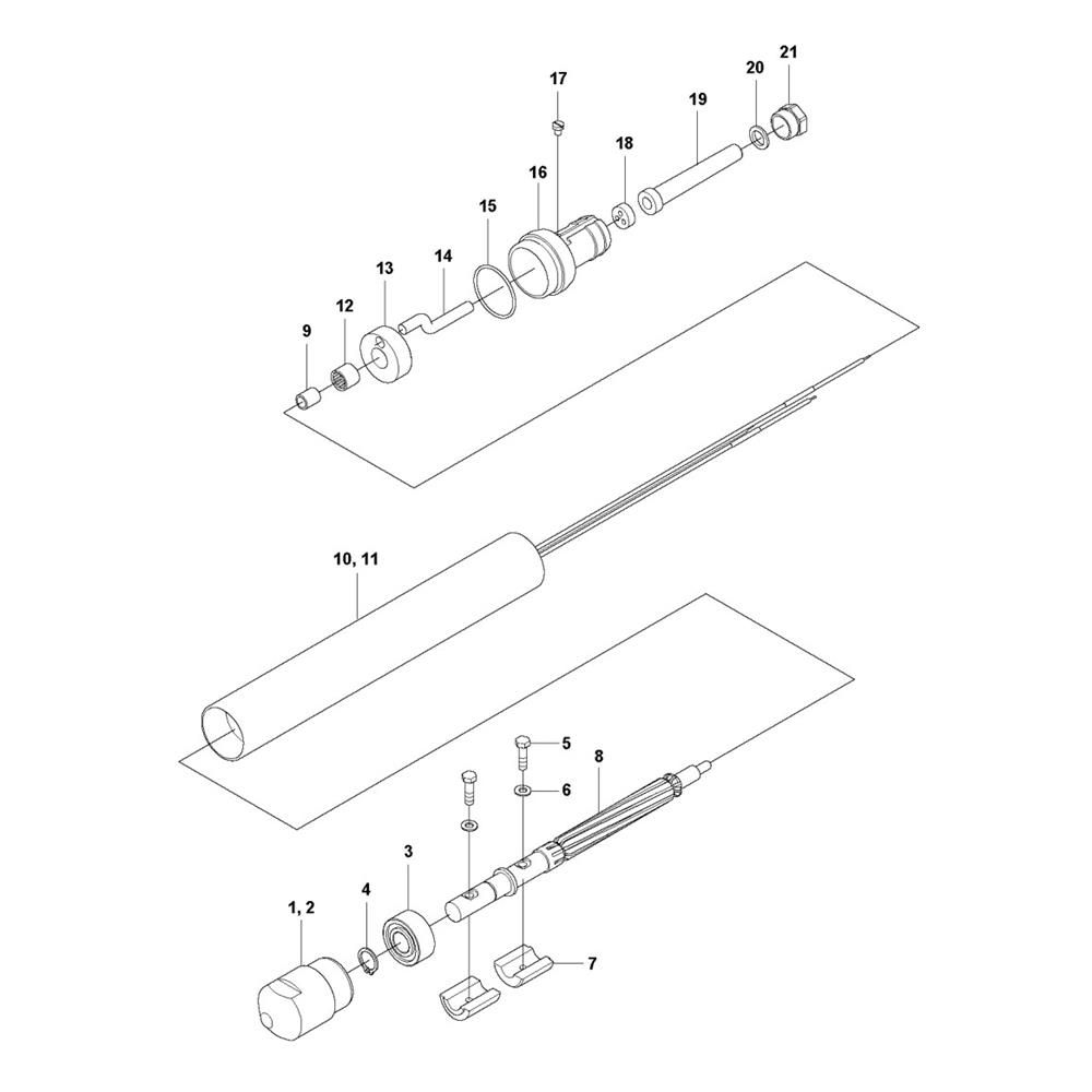 The Vibrator Assembly for the Husqvarna SMART 48 Poker is designed to ensure optimal performance and longevity of your equipment. This assembly includes key components such as bearings, seals, and shafts, which work together to provide efficient vibration for concrete consolidation. Genuine Husqvarna parts ensure compatibility and reliability, making them ideal for maintaining your poker's functionality.
