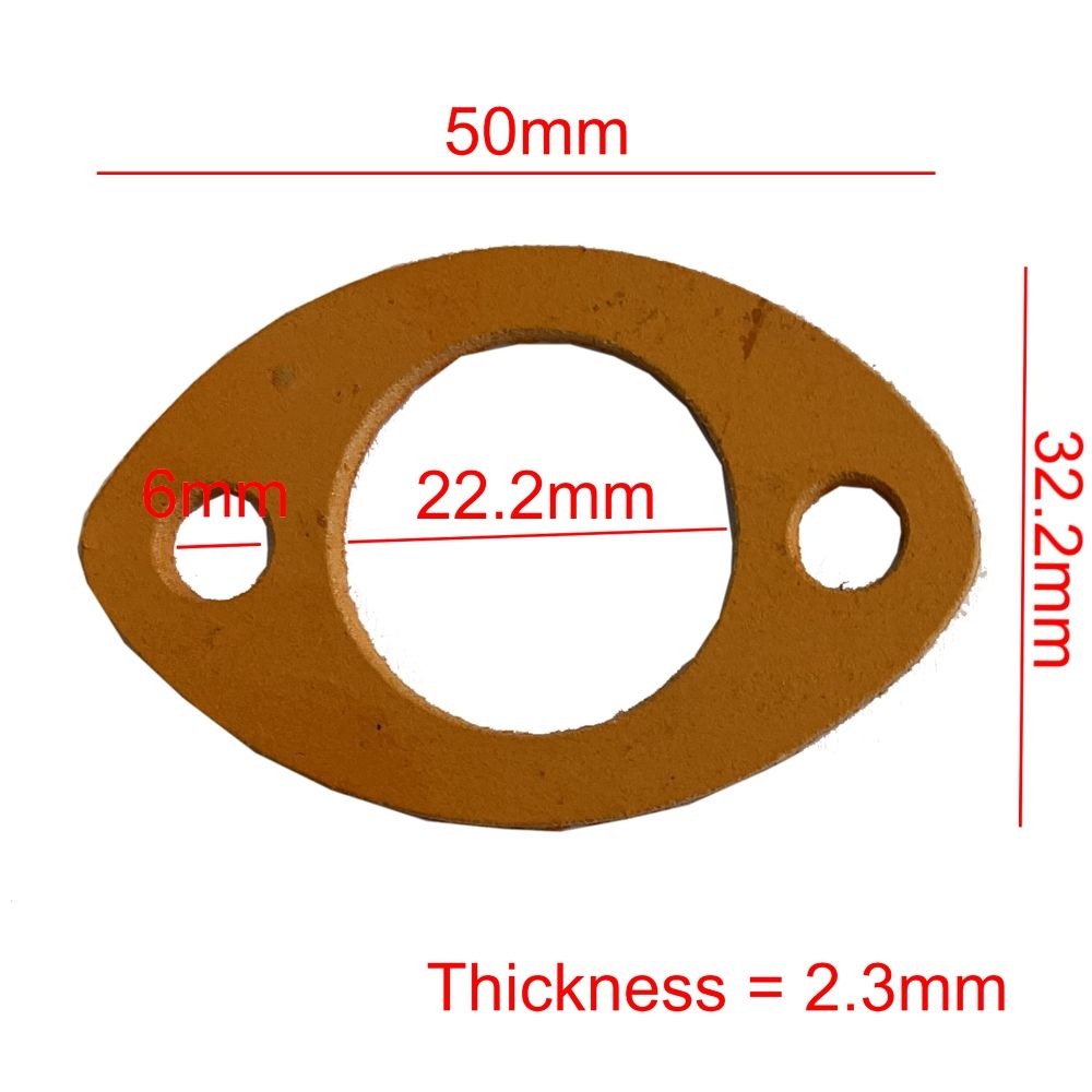 Exhaust port gasket, exhaust manifold gasket, silencer gasket, flange gasket, exhaust sealing washer, exhaust joint, engine exhaust seal, replacement exhaust gasket for Villiers engines.