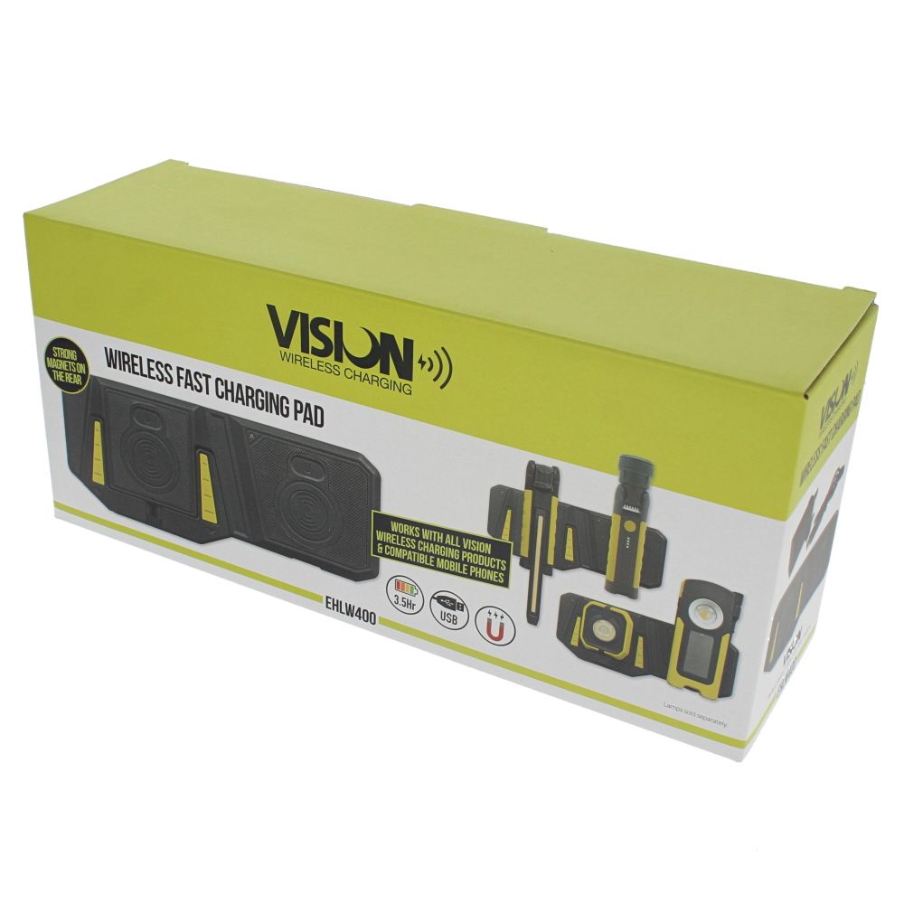 - Fast wireless charging for compatible mobile devices and Vision lamps/torches
