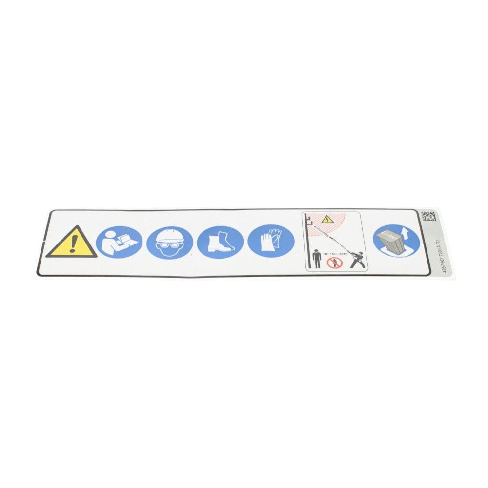 Used on Stihl cordless pole pruners during assembly, servicing or refurbishment to ensure safety information remains visible. Ideal when restoring machines to a safe condition after wear, cleaning, repainting or component replacement. Common in landscaping, grounds maintenance, tree care and domestic garden work where labels face weathering and abrasion.
