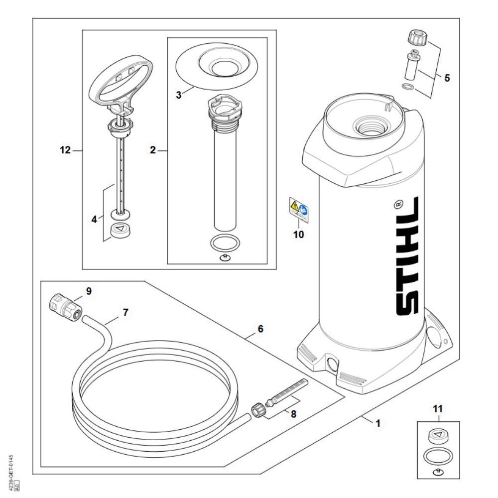 The Water Attachment Assembly for Stihl TS760 Disc Cutters is designed to enhance cutting efficiency by providing a steady water flow to the cutting area. This genuine Stihl part helps reduce dust and cools the blade, improving performance and extending the lifespan of the cutter. Essential for maintaining optimal operation, it includes components like hoses and connectors.