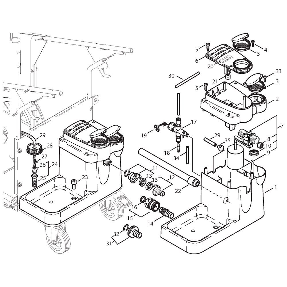 The Water Break Tank Assembly for the Nilfisk MH 7P-175/1260 P 400/3/50 Pressure Washer is designed to ensure optimal performance and safety. This assembly helps regulate water flow and pressure, preventing backflow and contamination. Essential components may include valves, seals, and connectors, all contributing to the efficient operation of your pressure washer.