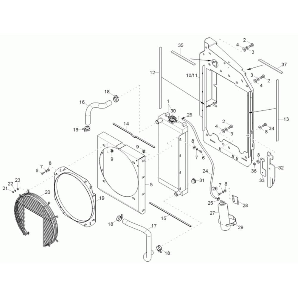 The Water Cooler Assembly for the Wacker 38Z3 Mini Excavator is designed to ensure optimal engine temperature and performance. This assembly includes key components such as hoses, clamps, and seals, which work together to maintain efficient cooling. Essential for routine maintenance, it helps prevent overheating and extends the life of your excavator.