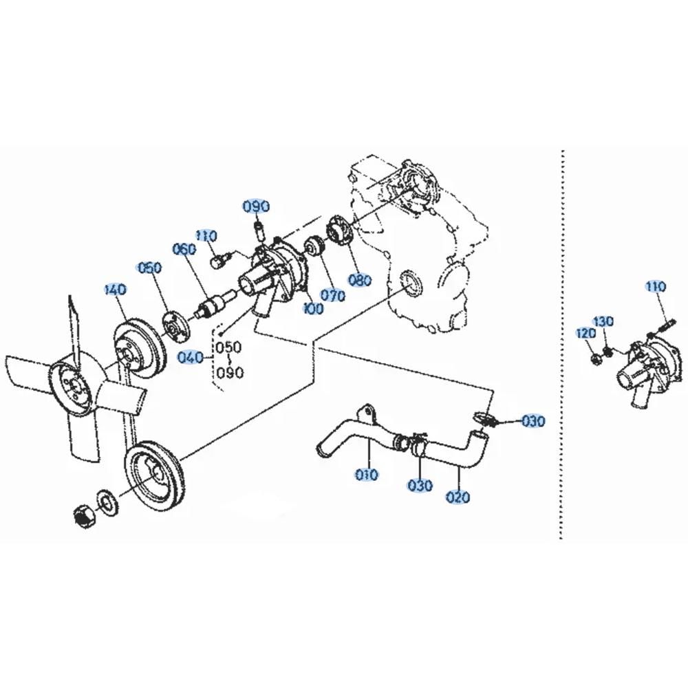The Water Pump Assembly for the Kubota KH36 Mini Excavator is crucial for maintaining optimal engine temperature and performance. This assembly includes components such as gaskets, seals, and impellers, ensuring efficient coolant circulation. Designed for durability and reliability, it helps prevent overheating and extends the life of your excavator. Suitable for routine maintenance and repairs.