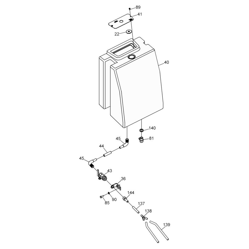 The Water System Assembly for the Wacker BFSX 18 Floor Saw is designed to ensure optimal cooling and dust suppression during cutting operations. This assembly includes components such as hoses, connectors, and valves, which work together to deliver water efficiently to the cutting area. By maintaining proper hydration, the system helps prolong blade life and improve cutting precision.