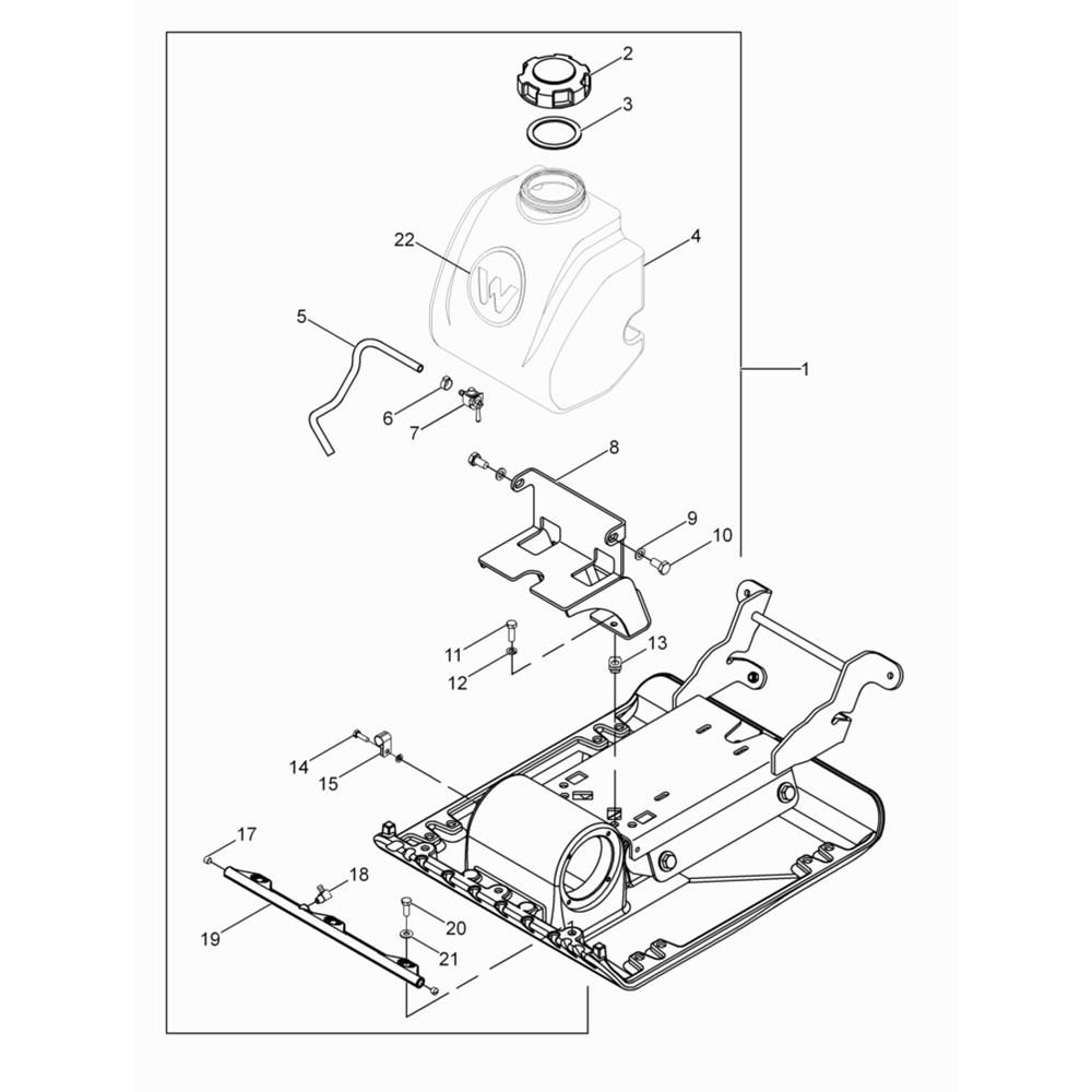 The Water System Assembly for the Wacker VP1340W Compactor is designed to ensure optimal performance by delivering water to the compactor's plate. This system helps in reducing dust and improving compaction efficiency. It includes components such as hoses, nozzles, and connectors, all tailored for the Wacker Neuson Forward Plate Compactor.