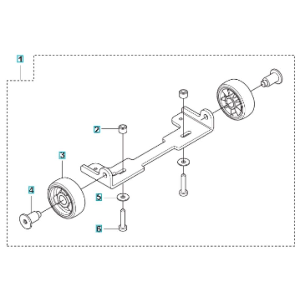 The Wheel Assembly for the Husqvarna K1 PACE Battery Disc Cutter is designed to ensure smooth operation and mobility. This assembly includes key components such as wheels, axles, and brackets, which are essential for maintaining the cutter's stability and ease of use. Suitable for both genuine and non-genuine Husqvarna parts, it supports efficient cutting tasks.