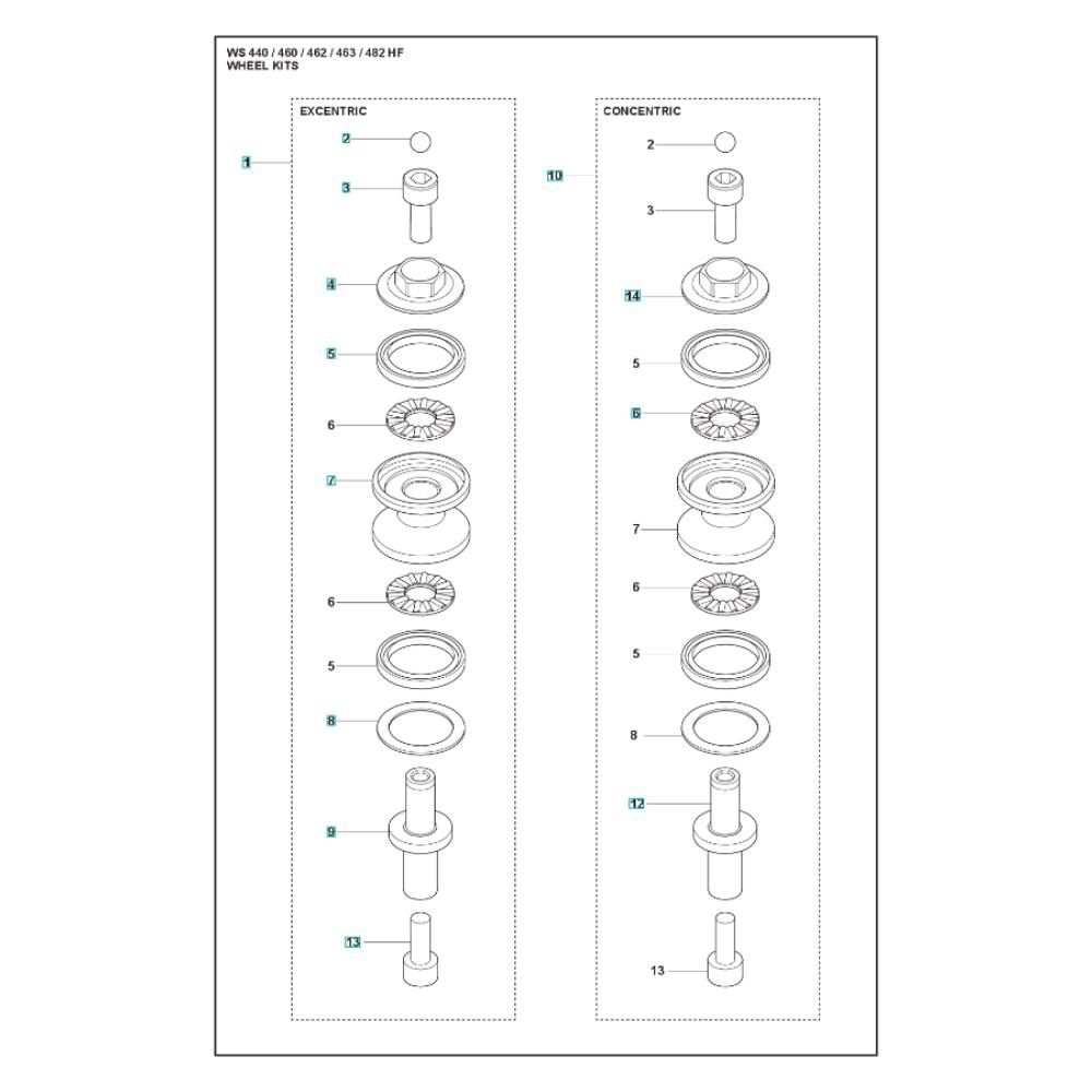 The Wheel Assembly for the Husqvarna WS 462 Wall Saw is designed to ensure smooth and efficient operation. This assembly includes key components that facilitate the movement and stability of the saw, enhancing its cutting precision. Genuine Husqvarna parts ensure compatibility and durability, supporting the saw's performance in demanding conditions.