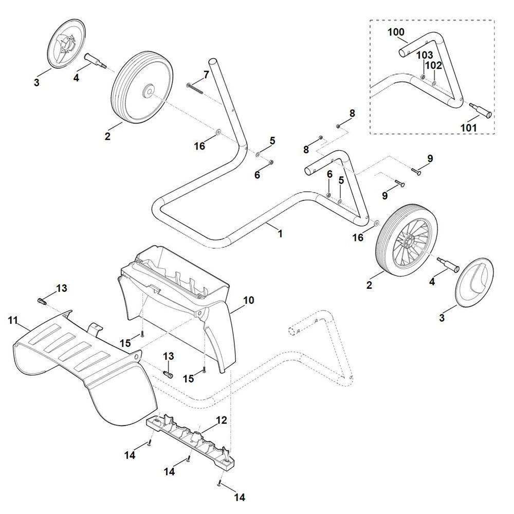 The wheel carrier for the Stihl GH 370.0 S Shredder is an essential component for ensuring smooth mobility and stability during operation. Designed specifically for this model, it supports the shredder's weight and facilitates easy transport across various terrains. This genuine Stihl part is crucial for maintaining the shredder's performance and longevity.
