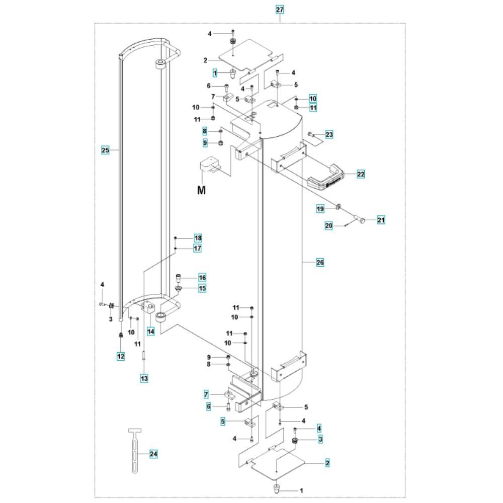 The Wheel Guard Assembly for the Husqvarna CS 10 Wire Saw is designed to protect the saw's components during operation. This assembly ensures safe and efficient cutting by shielding the wheel from debris and potential damage. It includes essential parts such as guards, brackets, and fasteners, all crafted to fit seamlessly with the Husqvarna CS 10 model.