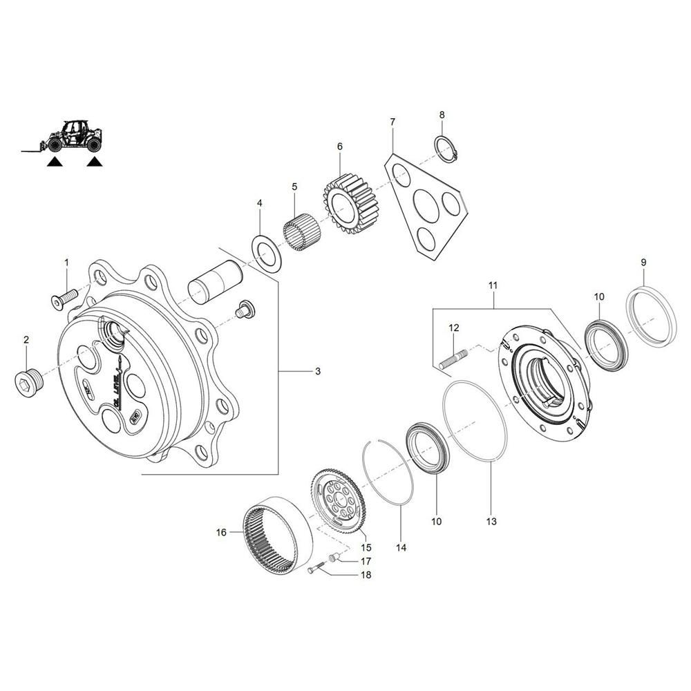 The Wheel Hub Assembly for the Wacker TH522 Telehandler is a crucial component designed to ensure smooth and reliable operation. This assembly includes parts such as bearings, seals, and studs, which work together to support the wheel and allow for efficient movement. Genuine Wacker Neuson parts ensure compatibility and durability, maintaining the telehandler's performance.