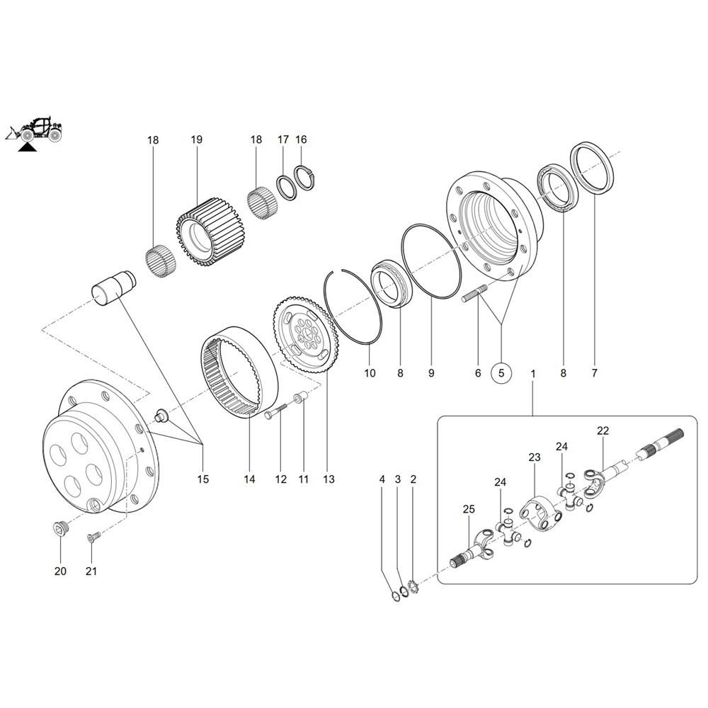 The Front Wheel Hub Assembly for the Wacker TH730 (415-24) Telehandler is designed to ensure optimal performance and safety. This assembly includes key components such as bearings, seals, and studs, which are crucial for the smooth operation of the telehandler's front wheels. Genuine Wacker Neuson parts guarantee compatibility and reliability, supporting efficient load handling and manoeuvrability.