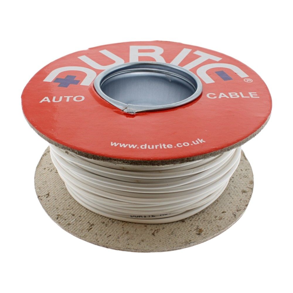 The White Single-Core PVC Auto Cable - 1mm x 50m is a high-quality genuine part from Durite, designed for automotive and electrical applications. Made from durable PVC, this cable ensures excellent insulation and flexibility, making it ideal for various wiring tasks. With a cross-sectional area of 1mm², it is suitable for use in vehicles and machinery where reliable electrical connections are essential. The cable is perfect for tradespeople and DIY enthusiasts who require dependable wiring solutions.