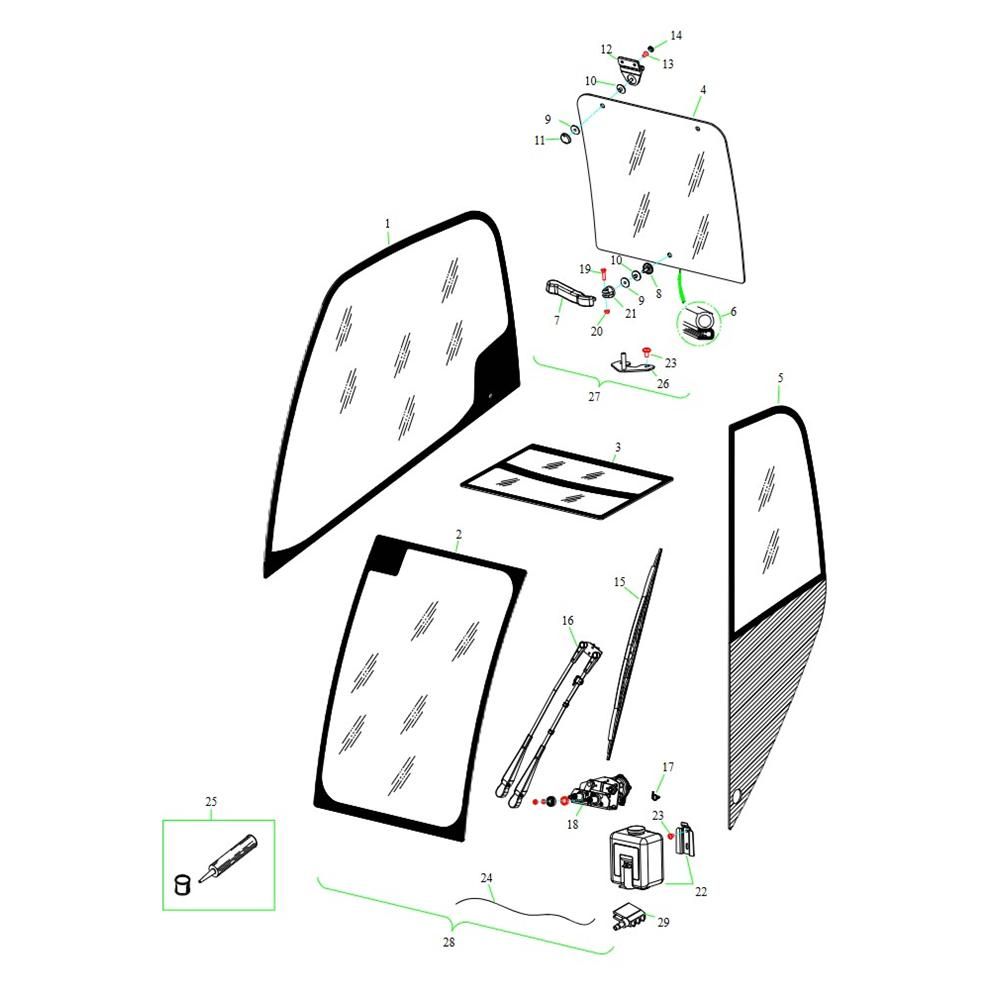 The Window Assembly for the Wacker TH408 Telehandler includes essential components to ensure clear visibility and protection. Designed specifically for the Wacker Neuson Telehandler, this assembly helps maintain safety and operational efficiency. Components may include glass panes, seals, and mounting hardware, all tailored for a precise fit.