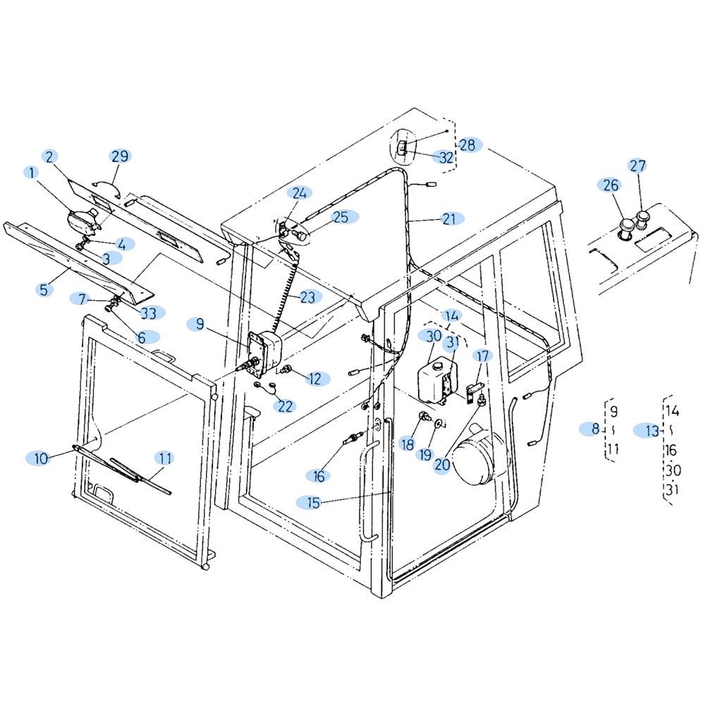 The Wiper Assembly for the Kubota KH60 Mini Excavator ensures clear visibility and safe operation in various weather conditions. This assembly includes essential components such as wiper blades, arms, and motors, designed to fit the Kubota KH60 model precisely. Genuine Kubota parts guarantee compatibility and durability, maintaining the excavator's performance and reliability.