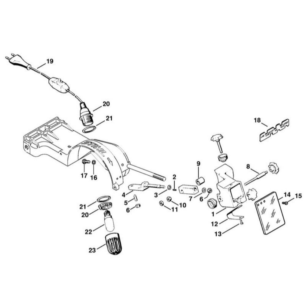 The Work Lamp Assembly for Stihl HOS Sharpeners is a genuine Stihl part designed to enhance visibility during sharpening tasks. This assembly ensures optimal lighting conditions, allowing for precise and efficient sharpening of tools. It is essential for maintaining the performance and longevity of your sharpening equipment.