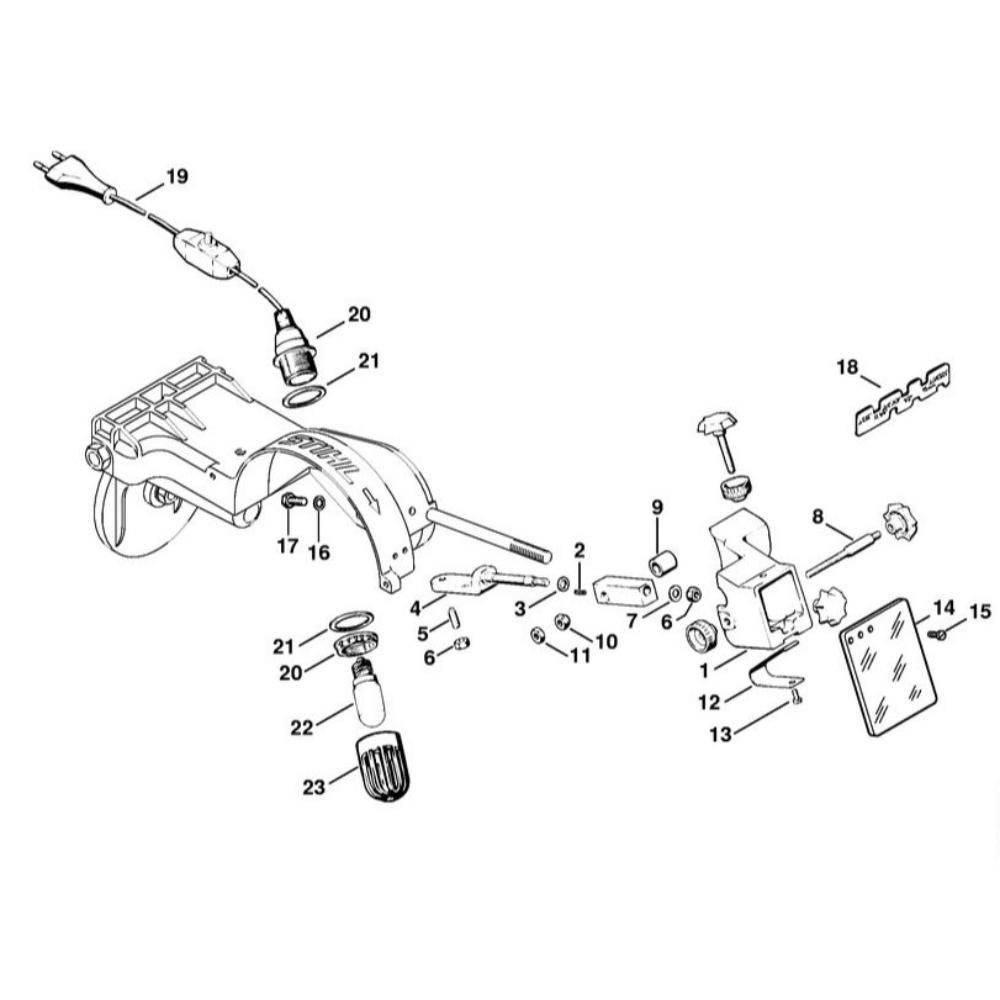 The Work Light Assembly for Stihl USG Sharpeners is a genuine Stihl part designed to enhance visibility during sharpening tasks. This assembly ensures optimal lighting conditions, aiding precision and efficiency. It includes components such as bulbs, mounts, and wiring, tailored for seamless integration with Stihl USG models.