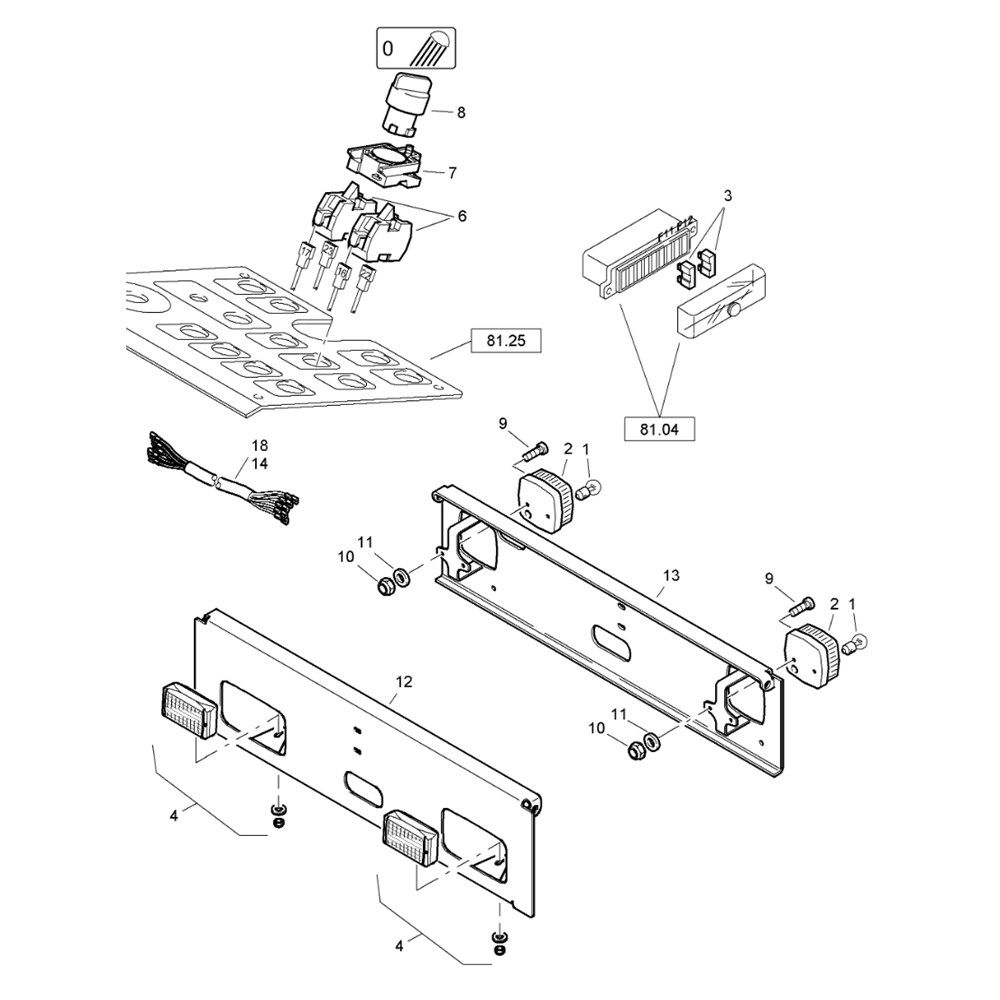 The Working Lighting Assembly for the Bomag BW 80 AD-2 Roller ensures optimal visibility and safety during operation. This assembly includes essential components such as lamps, wiring, and connectors, designed to withstand the demands of construction environments. Genuine Bomag parts guarantee compatibility and reliability, maintaining the performance of your roller.